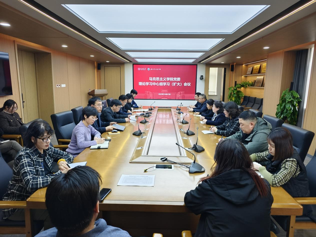在吕振羽楼317会议室召开党委理论学习中心组学习(扩大)会议,专题学习党的二十届四中全会精神。会议由学院党委书记钟新主持,学院党委理论学习中心组成员、教工党支部书记、行政人员参加会议。
